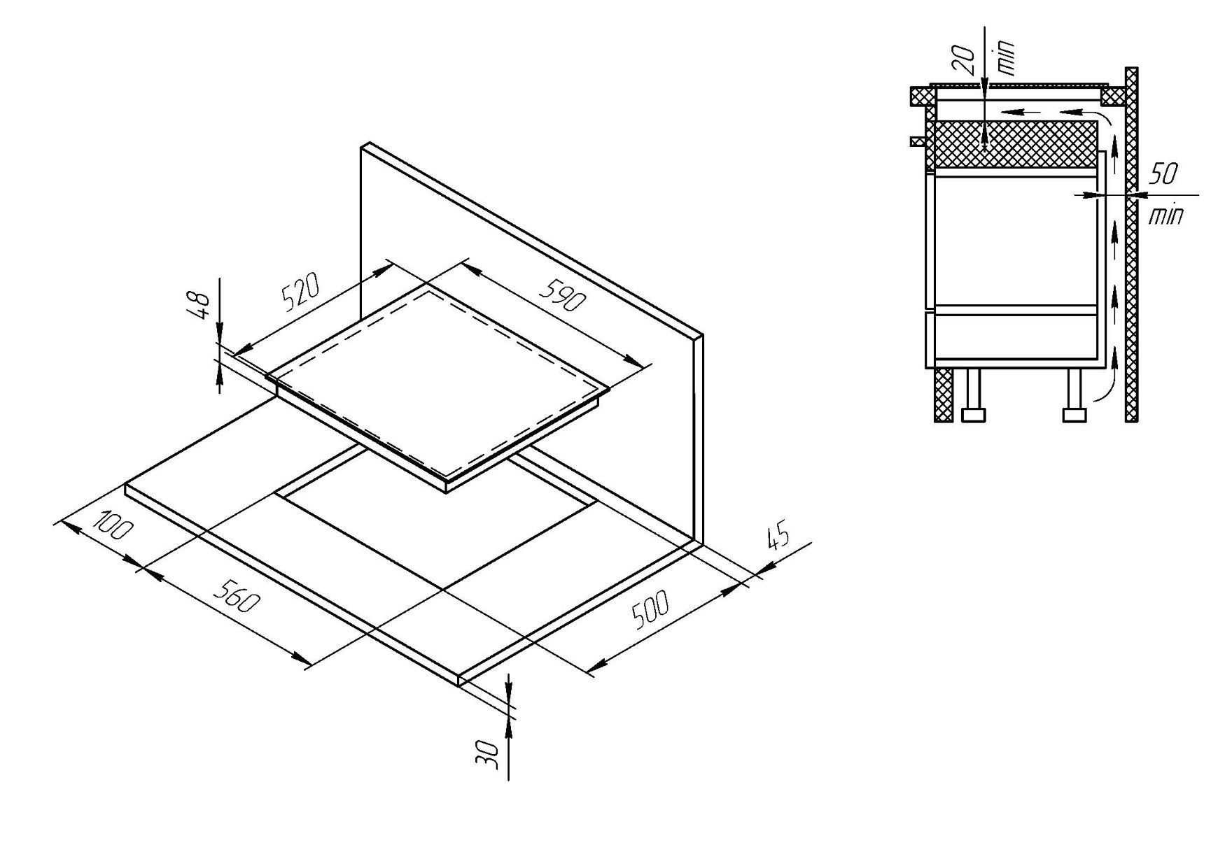 - Recess size for embedding (WxD), mm 560х500