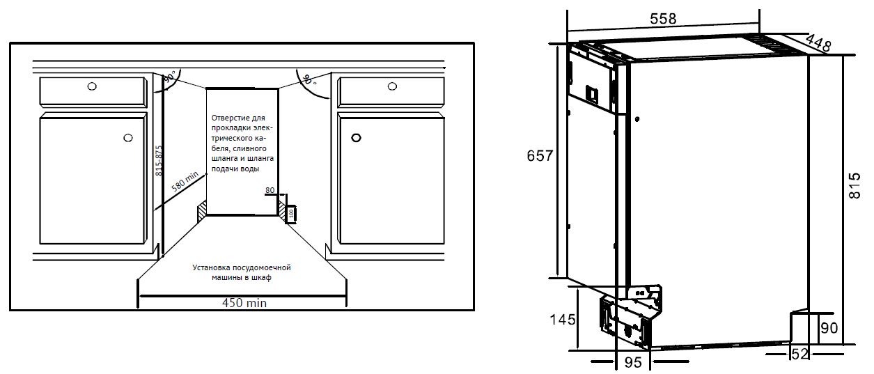 - Recess size for embedding (WxHxD), mm 820х450х580