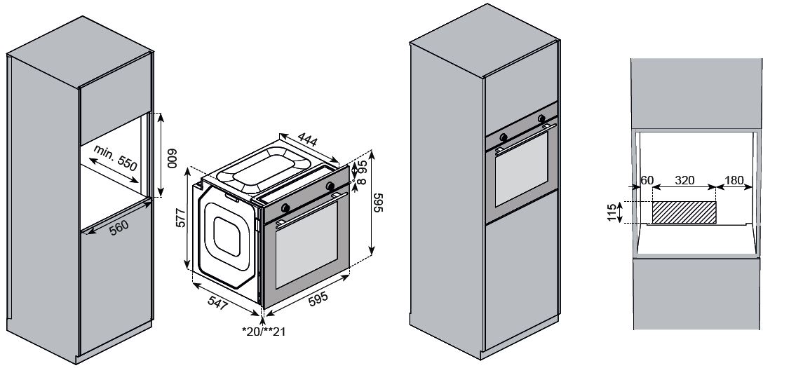 • Recess size for embedding a tabletop (HхWхD), mm 600х560х550