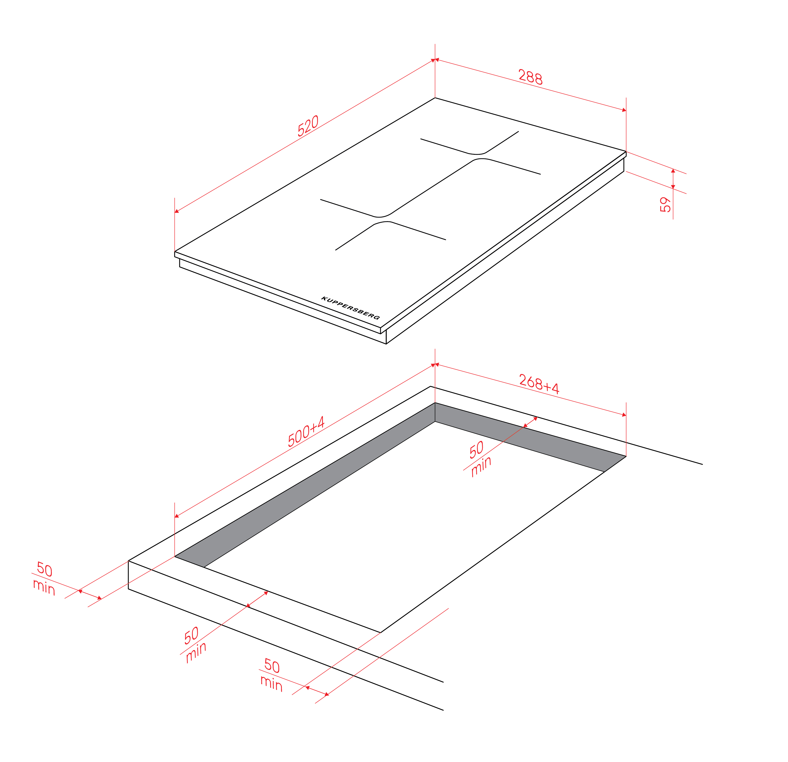 • Recess size for embedding (WxD), mm 268х500
