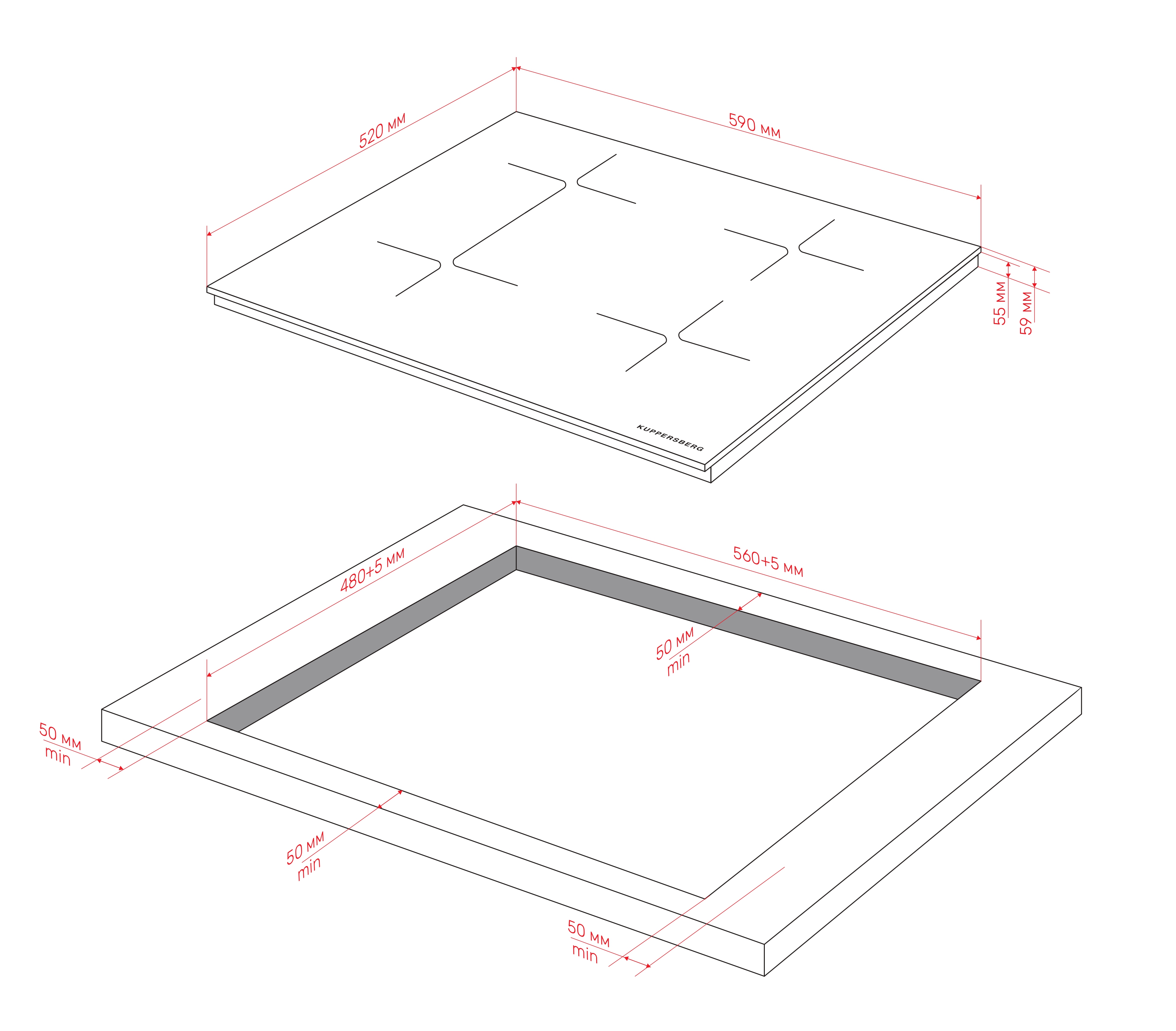 • Burner power, kW: rear left 1.6 кВт / 1.8 кВт