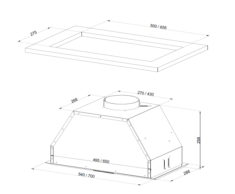 • Recess size for embedding (WxHxD), mm 270х495х245