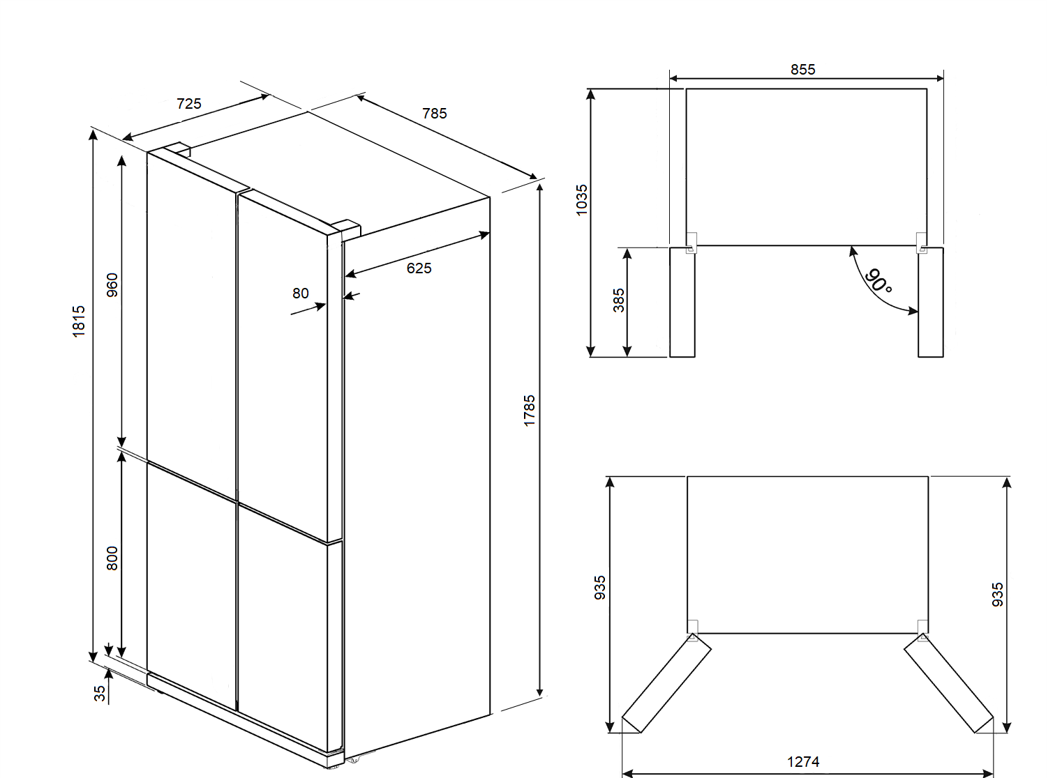 - Freestanding refrigerator Side by Side