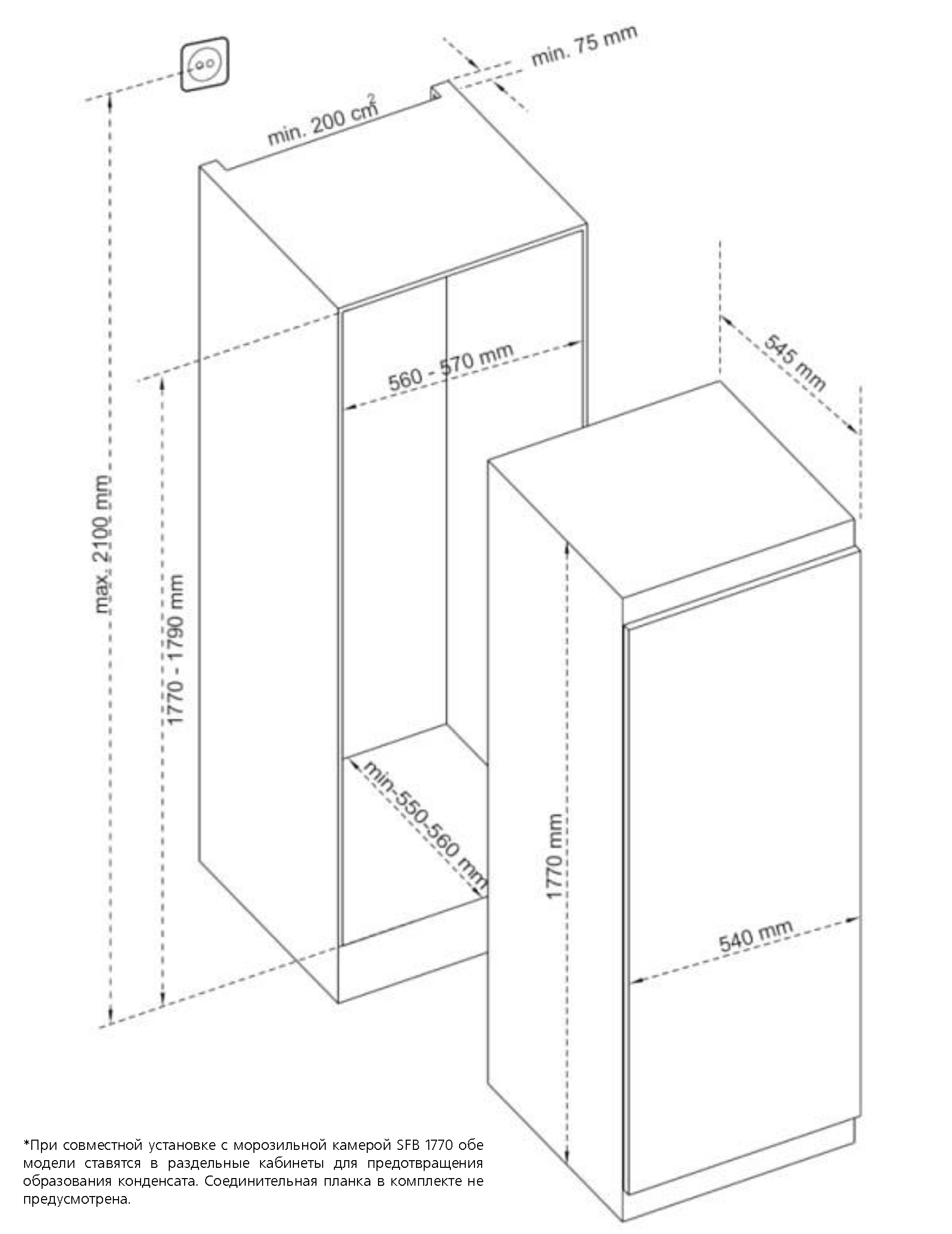 • Recess size for embedding (WxHxD), mm 560x1770x550