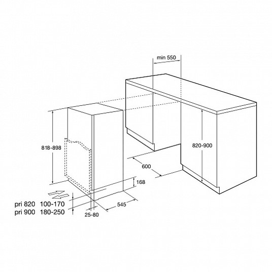 • Recess size for embedding (WxHxD), mm 600x898x550